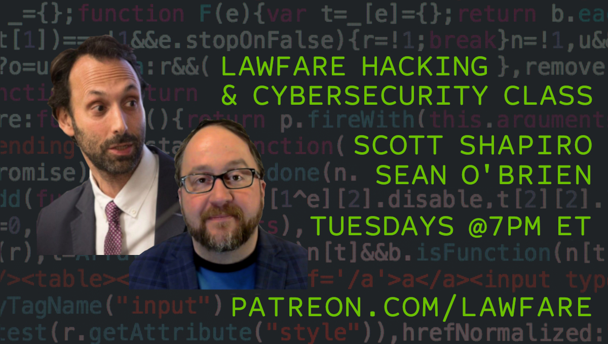 Last week on Lawfare, Scott J. Shapiro and I set out on a journey: We're bringing hacking and cybersecurity education to a remote cohort of Lawfare's material supporters and challenging them to become hackers themselves. There's still time to join us. Sign up for the next class, watch the replay from the first session, and read the class materials so far. If you're on the fence, you should know that no computer programming experience or math expertise is necessary.